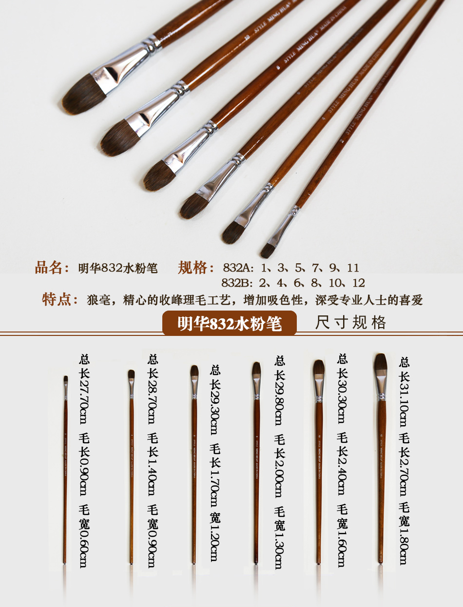 商品名称:明华832狼毫水粉笔